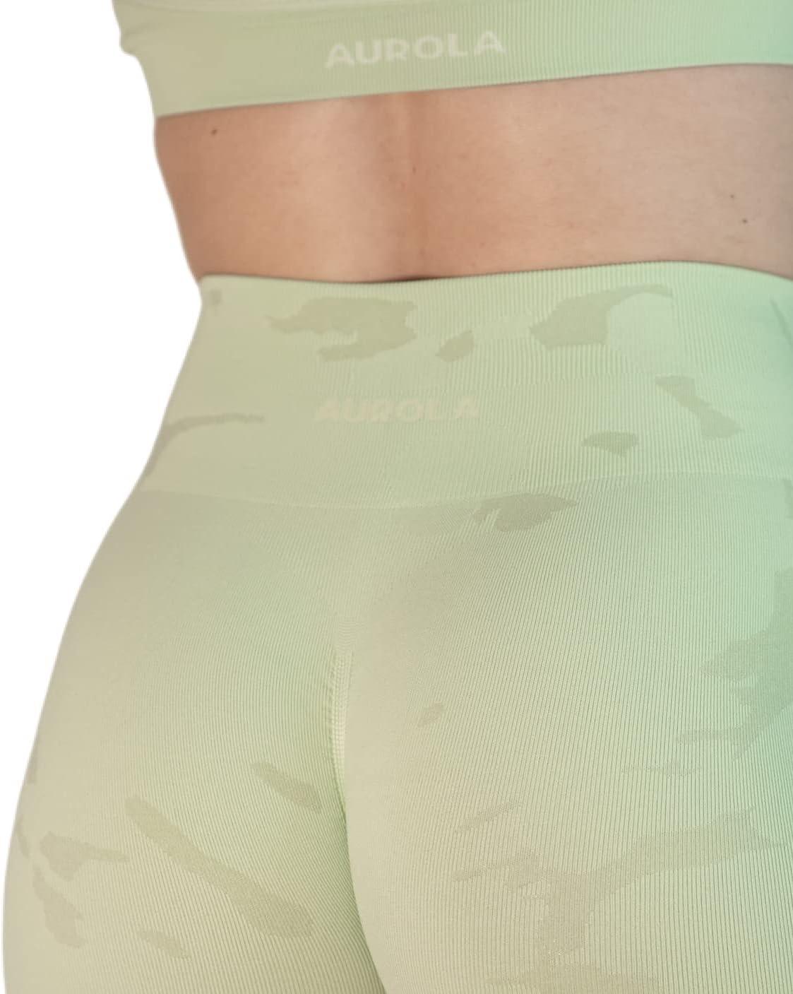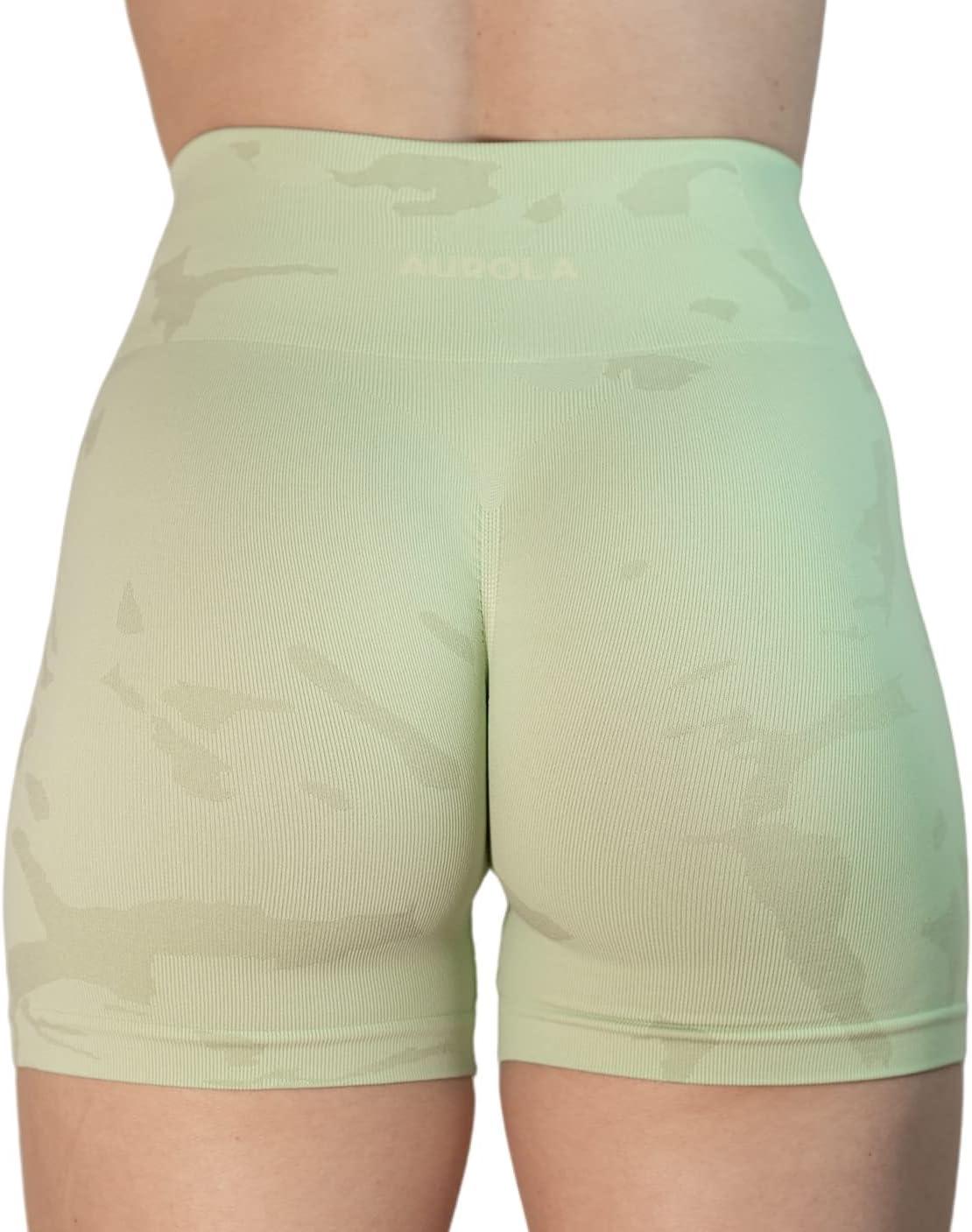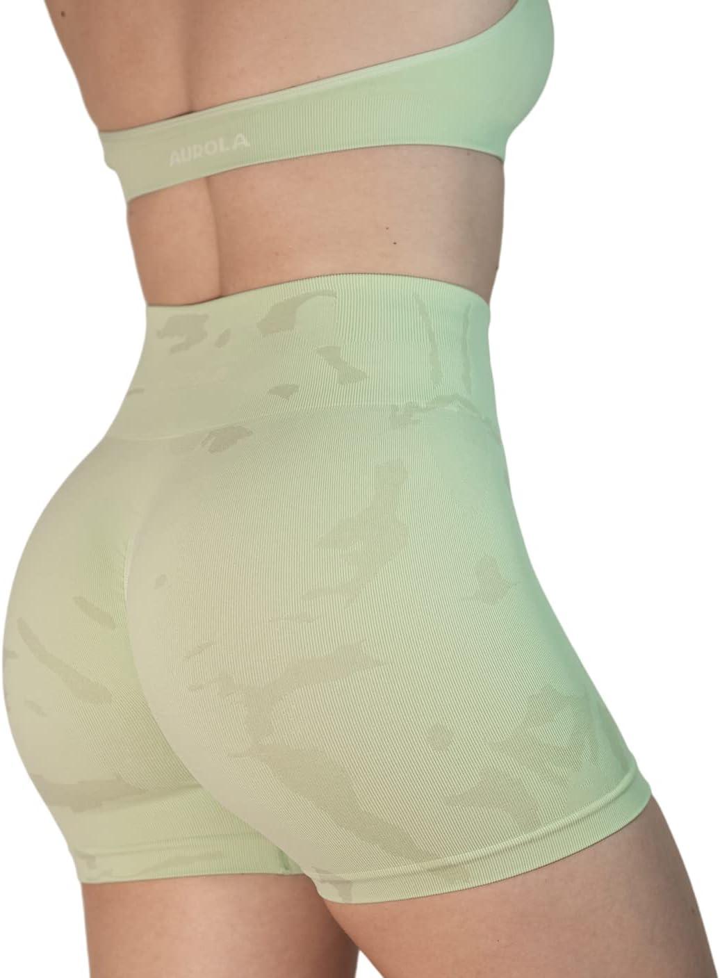AUROLA Dream Collection Women Workout Shorts High Waist Gym Shorts, Scrunch Butt Seamless Athletic Shorts(Camo-pastel Green)