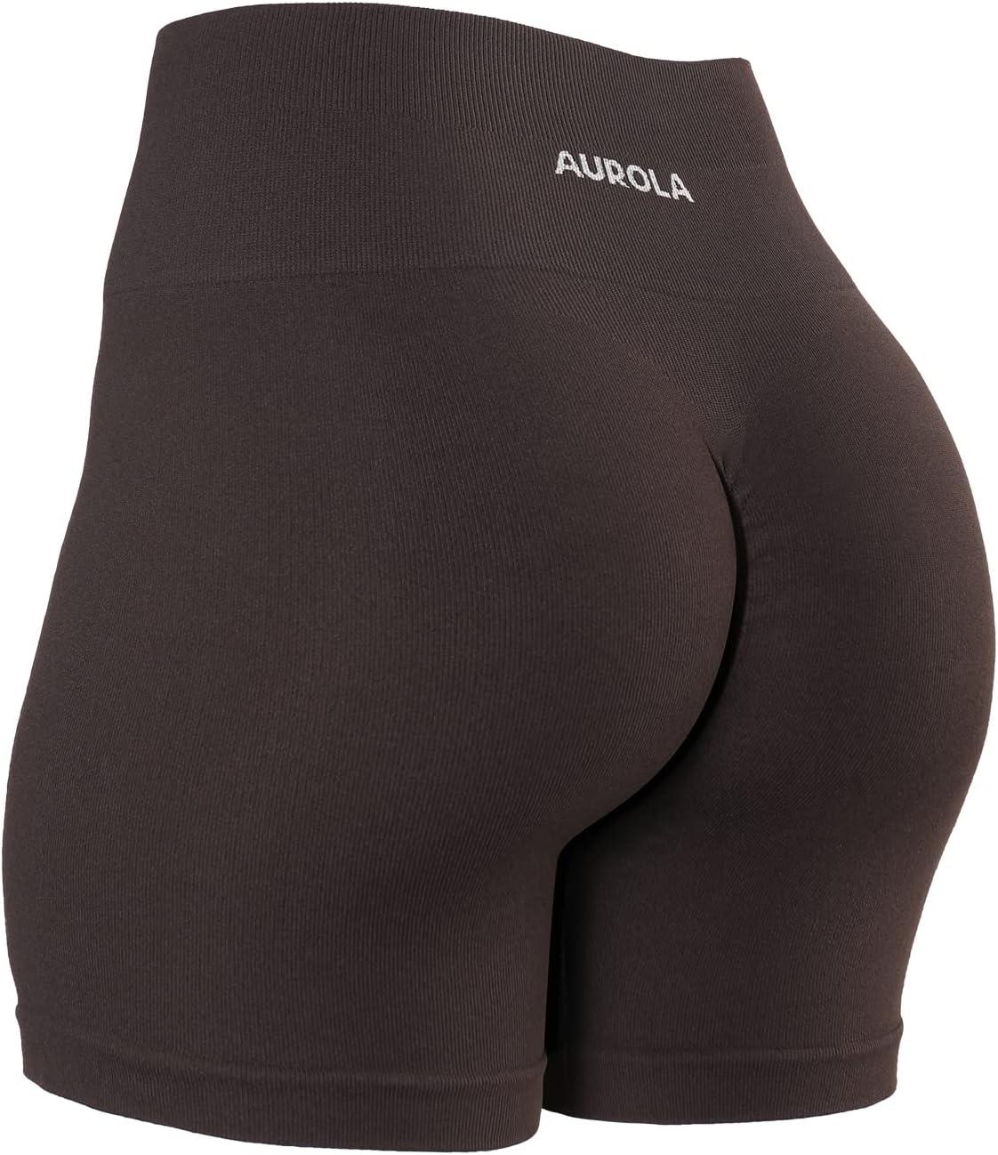 imageAUROLA Dream Collection Women Workout Shorts High Waist Gym Shorts Scrunch Butt Seamless Athletic ShortsPackblackNaturalChestnut Brown
