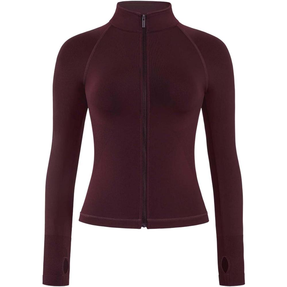 AUROLA Influence Athletic Workout Jacket for Women, Lightweight Slim Fit Full Zip Running Yoga Sports Jacket with Thumb Holes(Black Cherry)