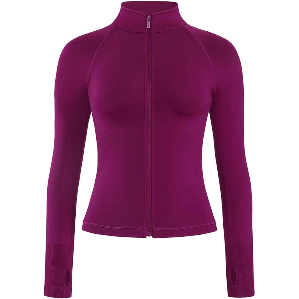AUROLA Influence Athletic Workout Jacket for Women, Lightweight Slim Fit Full Zip Running Yoga Sports Jacket with Thumb Holes(Magenta)