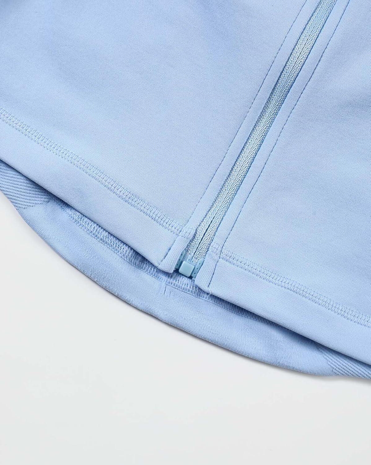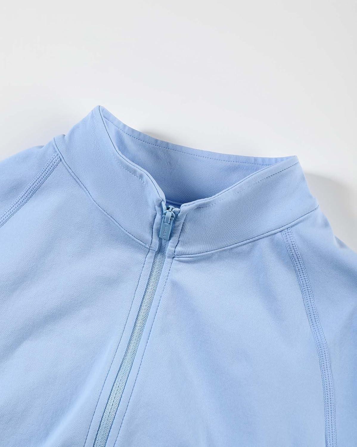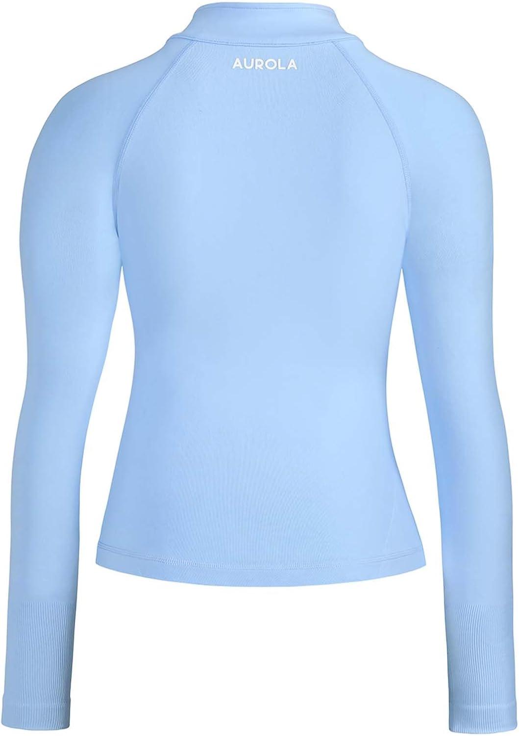 AUROLA Influence Athletic Workout Jacket for Women, Lightweight Slim Fit Full Zip Running Yoga Sports Jacket with Thumb Holes(Sky Light)
