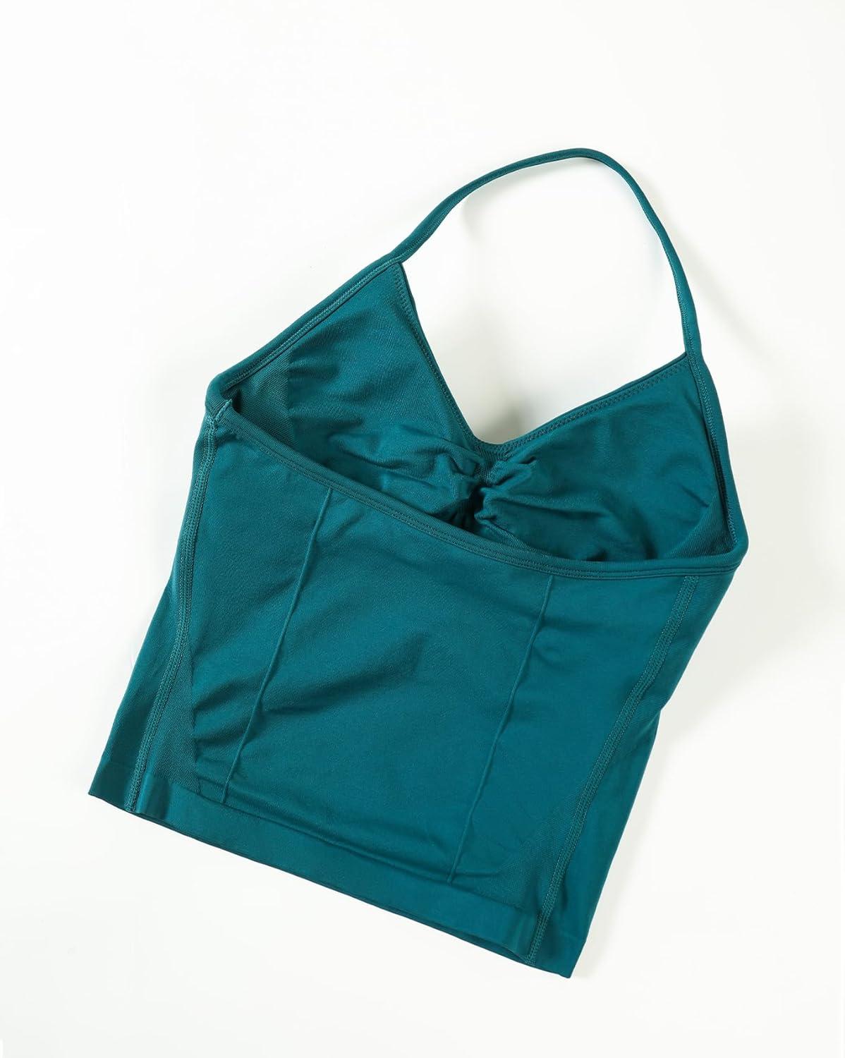 AUROLA Influence Longline Strappy Workout Halter Tops for Women,Removable Cups Padded Bras Impact Gym Yoga Sleeveless Top(Deep Teal)