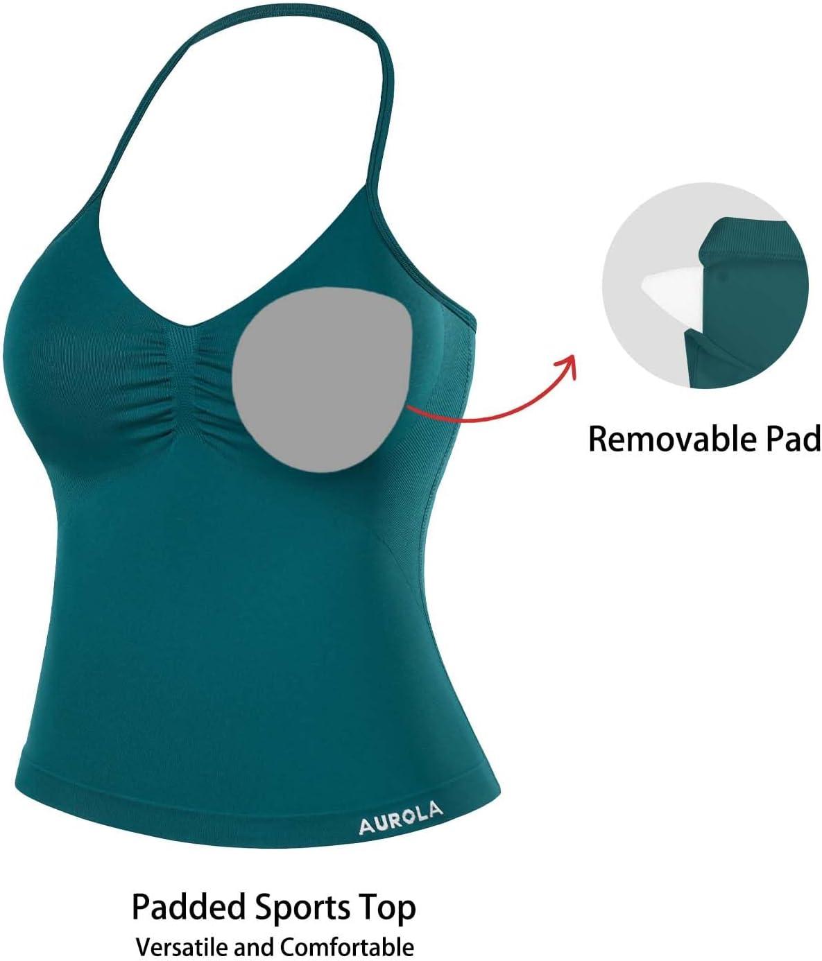 imageAUROLA Influence Longline Strappy Workout Halter Tops for WomenRemovable Cups Padded Bras Impact Gym Yoga Sleeveless TopFog Green