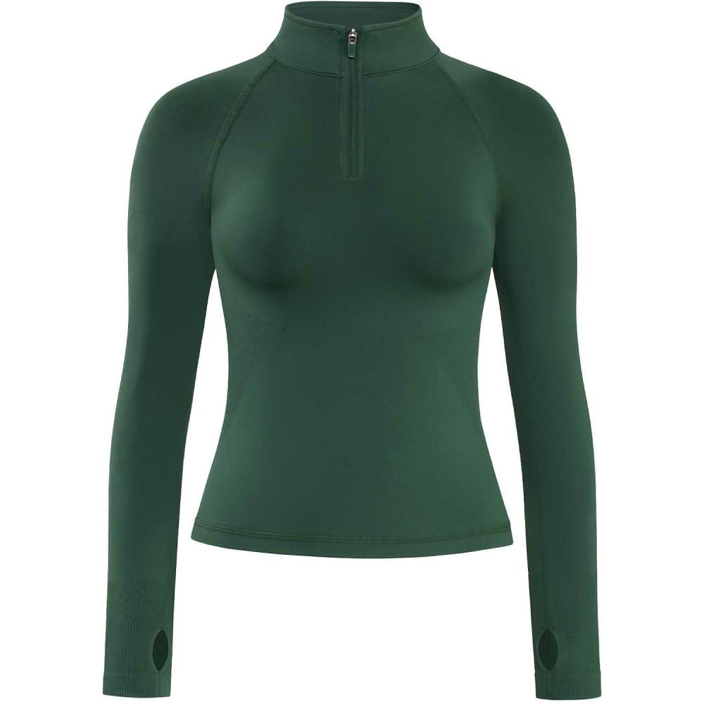 AUROLA Influence Workout Jacket for Women, Half Zip Cropped Slim Fit Long Sleeve Yoga Jackets Athletic Top with Thumb Holes(Eden Green)