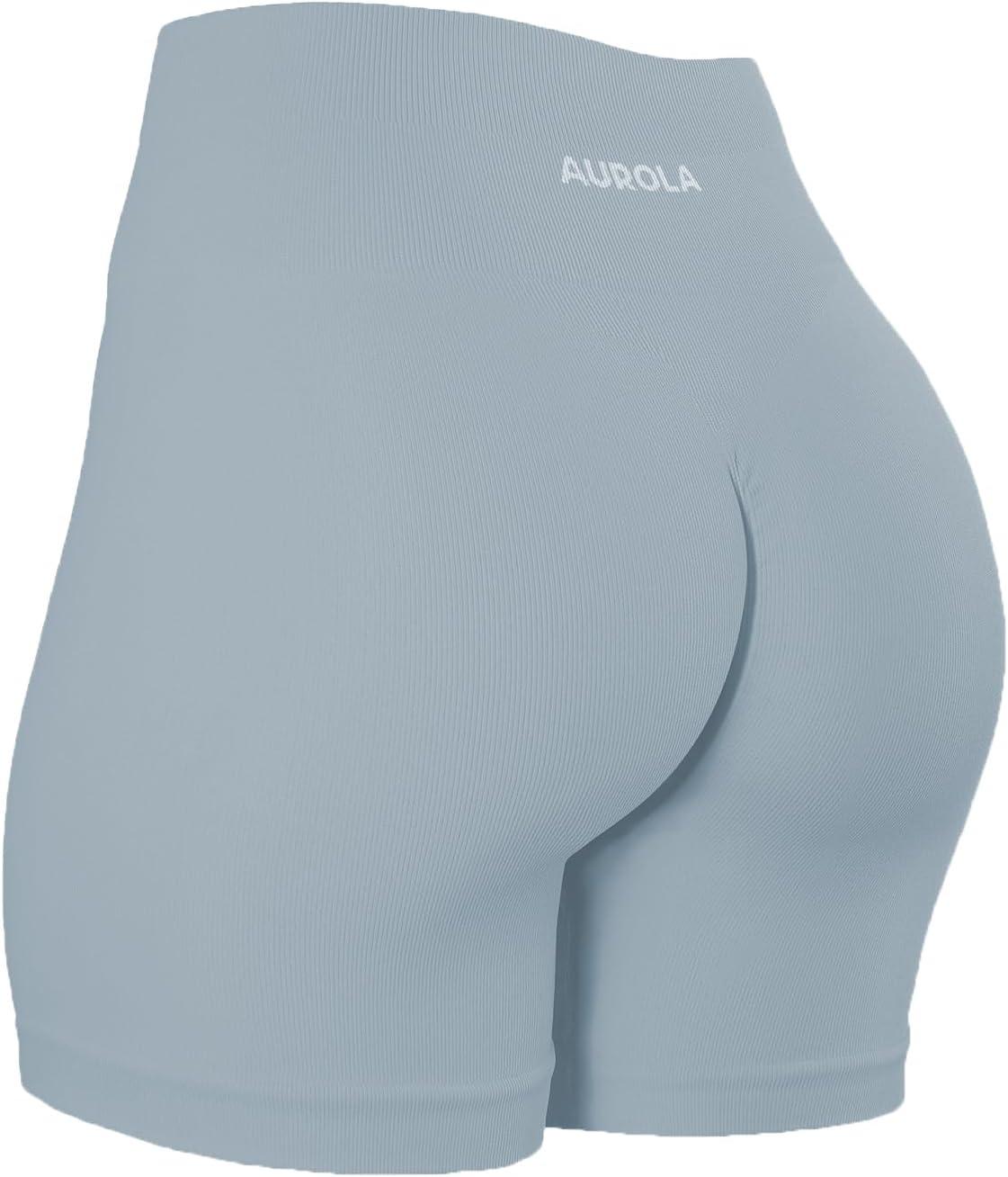 imageAUROLA Serpent Seamless Scrunch Workout Shorts for WomenTummy Control Squat Proof Ribbed Thick Active Gym ShortPackblackwater Blue