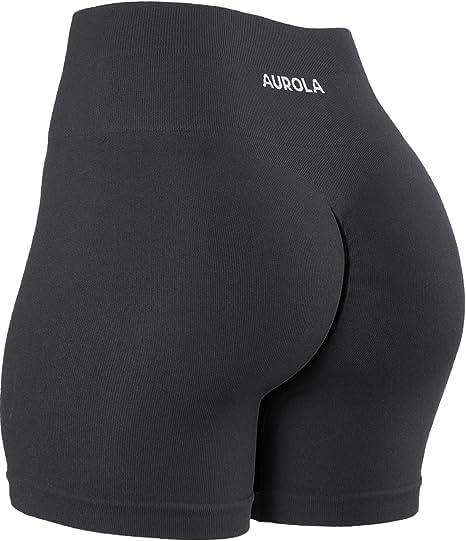 imageAUROLA Serpent Seamless Scrunch Workout Shorts for WomenTummy Control Squat Proof Ribbed Thick Active Gym ShortPackblackNaturalChestnut Brown